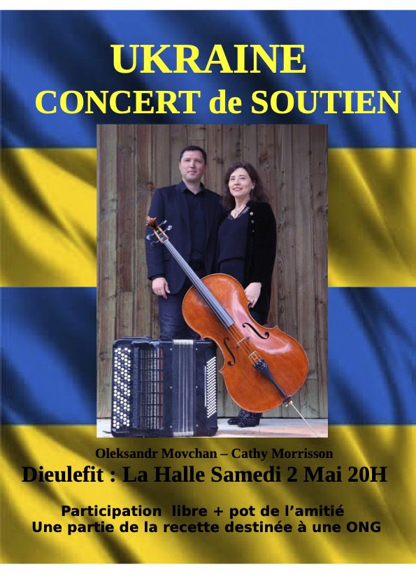 Concert de soutien à l'Ukraine organisé samedi 2 mai 2026 à 20h, à la Halle de Dieulefit.