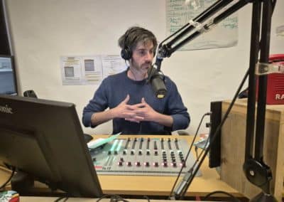 Ce studio est un lieu ouvert à toutes et tous. On peut y enregistrer sa voix, faire des émissions en direct et monter ses émissions sur l’un des deux postes mis à disposition.